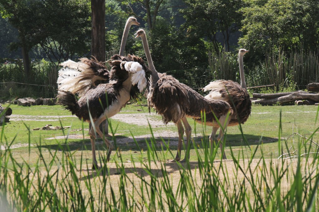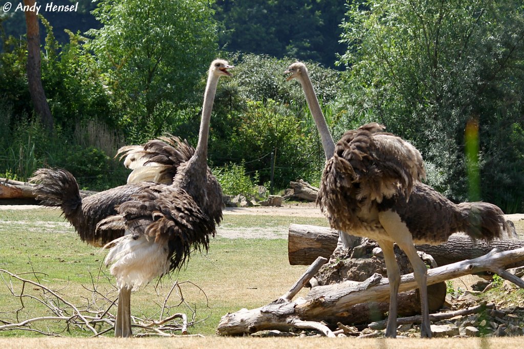 Südafrikanische Blauhalsstrausse mit Meinungsverschiedenheiten. 27.6.2010 im Leipziger Zoo.