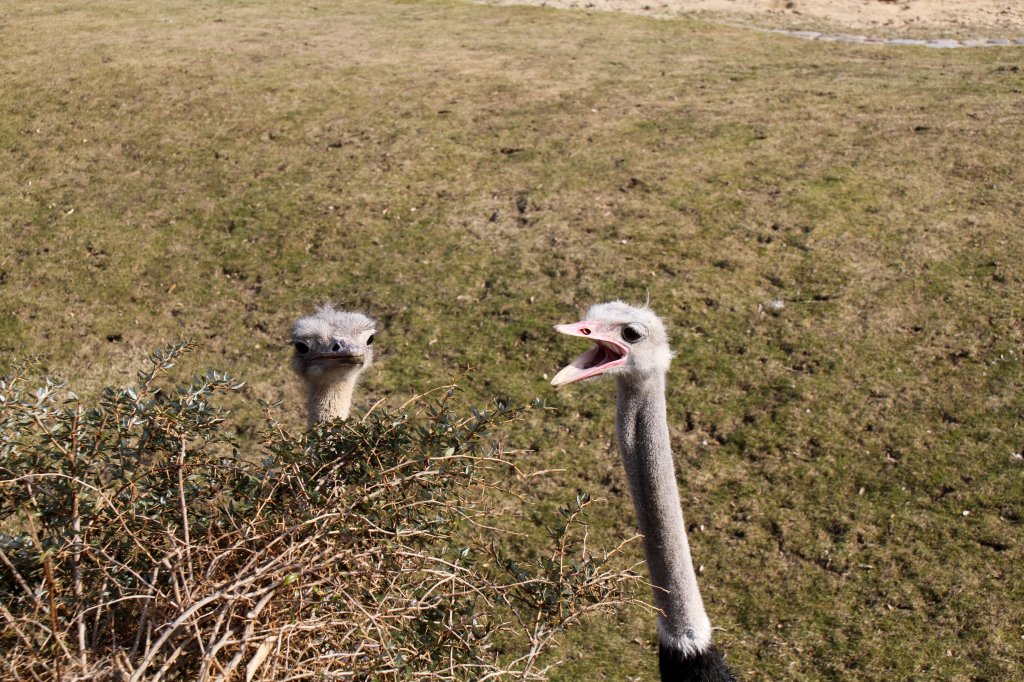Südafrikanische Blaushalsstrausse (Struthio camelus australis) am 11.3.2010 im Zoo Berlin.