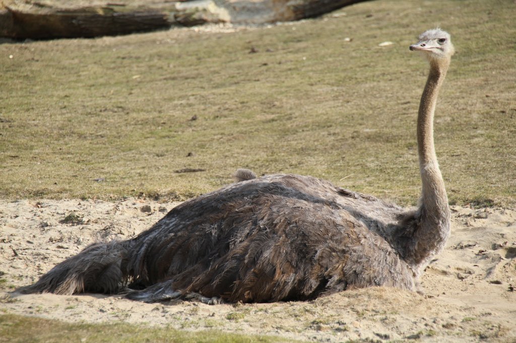 Südafrikanischer Blaushalsstrauss (Struthio camelus australis) beim Brüten am 11.3.2010 im Zoo Berlin.