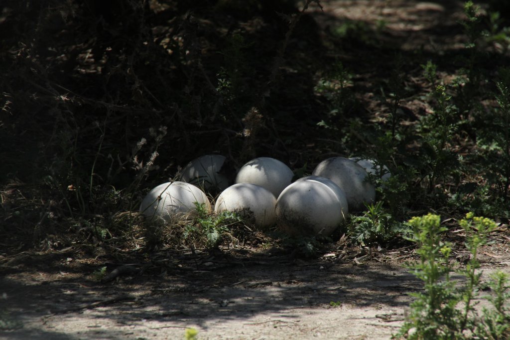 Unbewachte Straußeneier am 16.6.2010 bei Montemor-o-Velho (Europaradise Parque Zoológico).