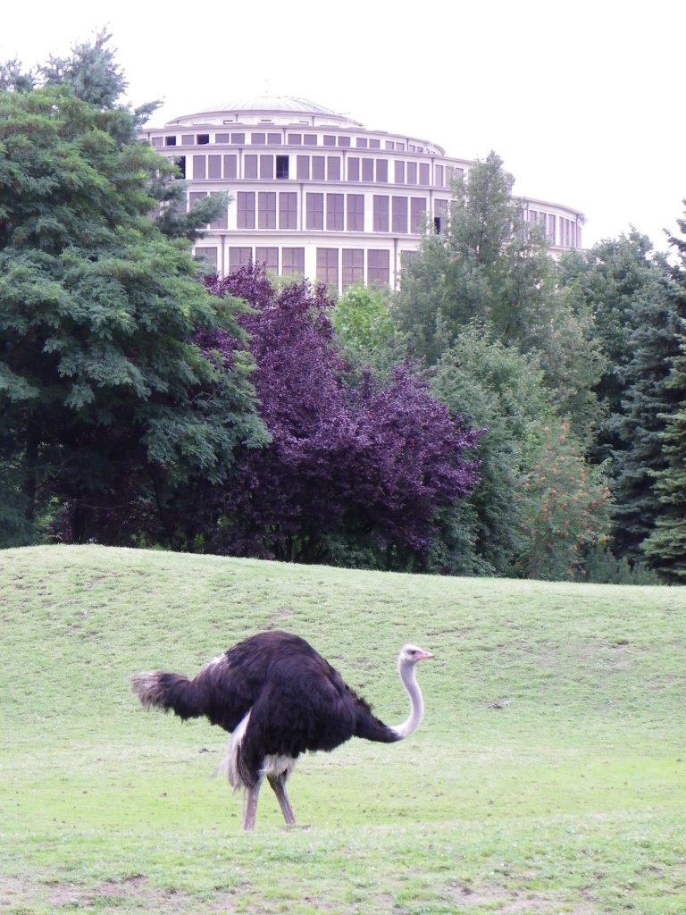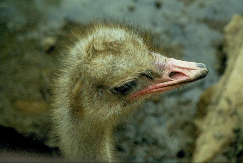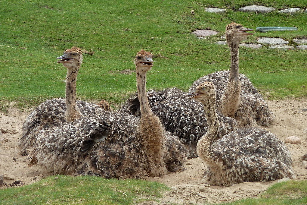 Südafrikanischer Strauß. Wenn die Jungvögel (geschlüpft am 12.06.2011) einmal ausgewachsen sind können sie eine Scheitelhöhe bis zu 2,75m erreichen. Ihr Gewicht beträgt dann bis zu 150kg. Auf der Flucht erreichen Strausse bis zu 70km/h. Foto:Berliner Zoo; 21.08.2011