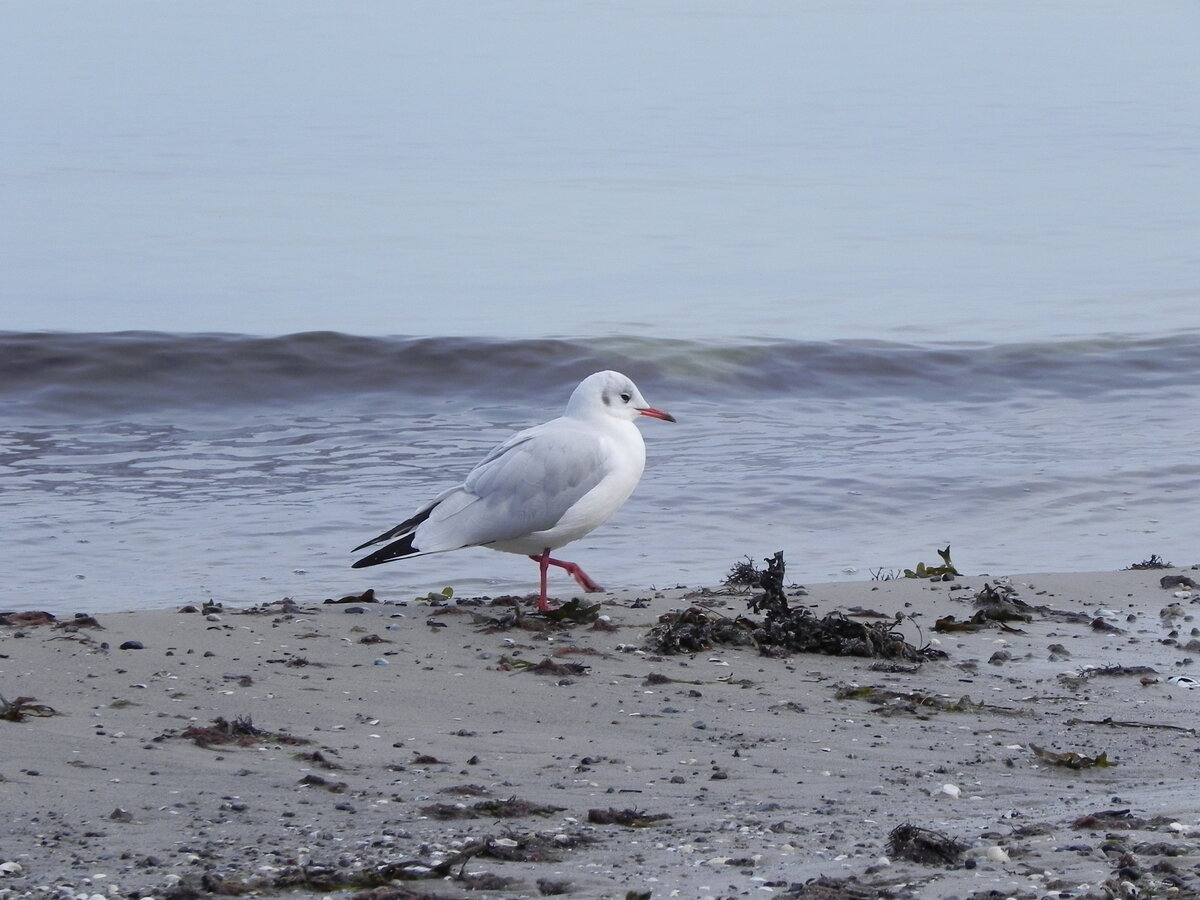 Eine Lachmöwe am 12.09.2010 am Strand von Binz auf der Insel Rügen. Lachmöwen brüten in den Verlandungszonen größerer Gewässer vor allem im Binnenland, seit einiger Zeit jedoch auch zunehmend an Küsten (Wikipedia). Ihr wissenschaftliche Artname Chroicocephalus ridibundus bedeutet "die reichlich Lachende", denn er ist zusammengesetzt aus den lateinischen Wörtern ridere = lachen und abundare = reichlich. Der deutsche Name stammt von der wörtlichen Übersetzung aus dem Lateinischen.