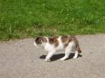 Eine Allgäuer Katze beim Spazieren in Ottacker am 10.08.08