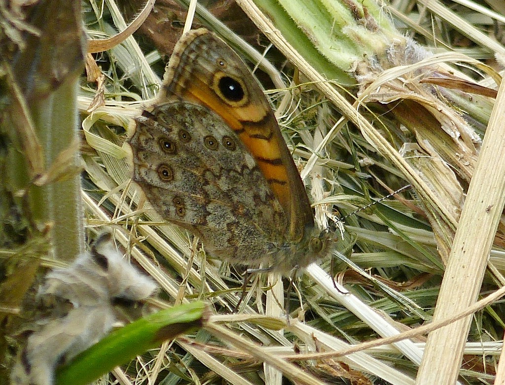 Mauerfuchs (Lasiommata megera) mit geschlossenen Flügeln. Festgehalten auf dem Chip am 08.06.2013.