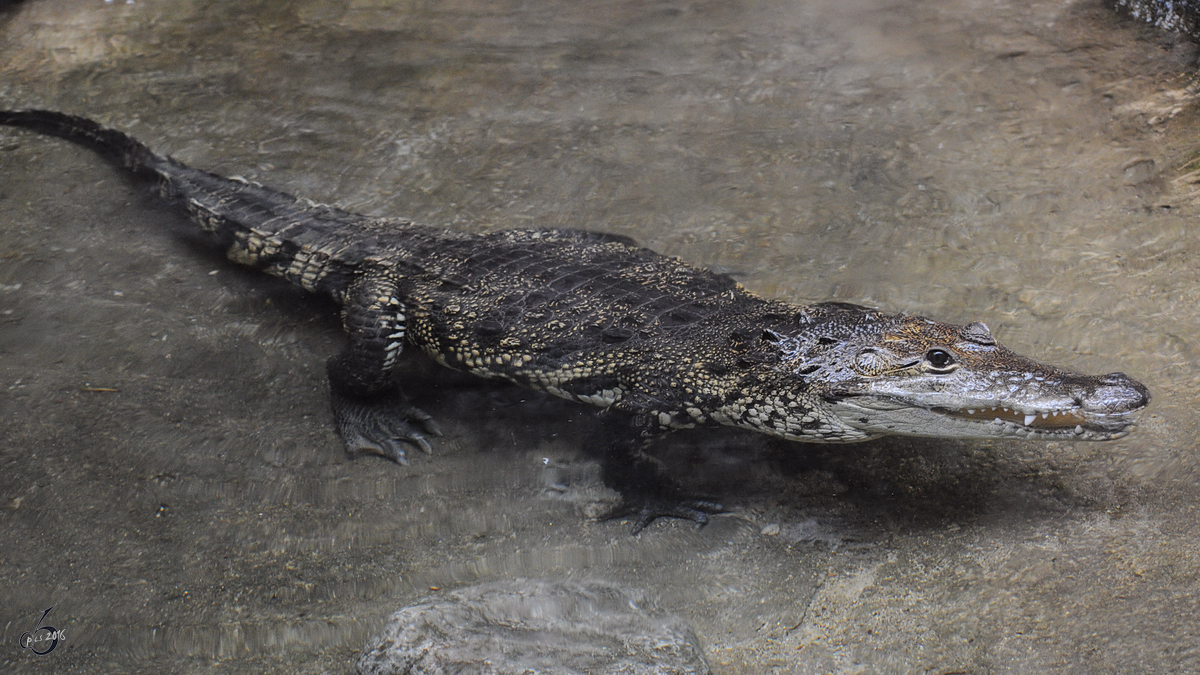 Ein Rautenkrokodil, fotografiert im Zoo Barcelona (Dezember 2011)