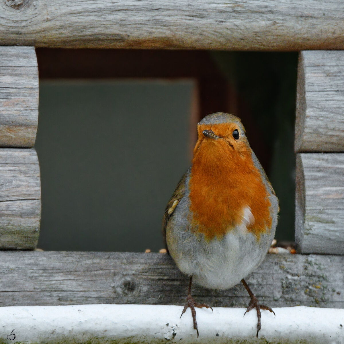 Ein Rotkehlchen in unserem Futterhäuschen. (Hattingen, Januar 2026)