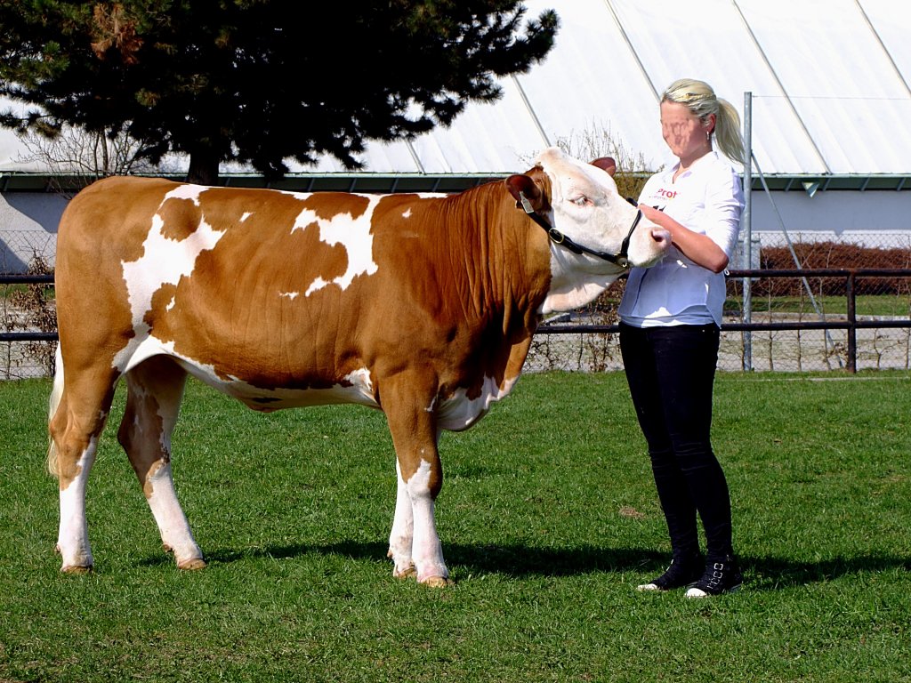 Fleckviehkalbin wird anlässlich des Bundesjungzüchterchampionat in Ried Stolz zur Schau gestellt;120325