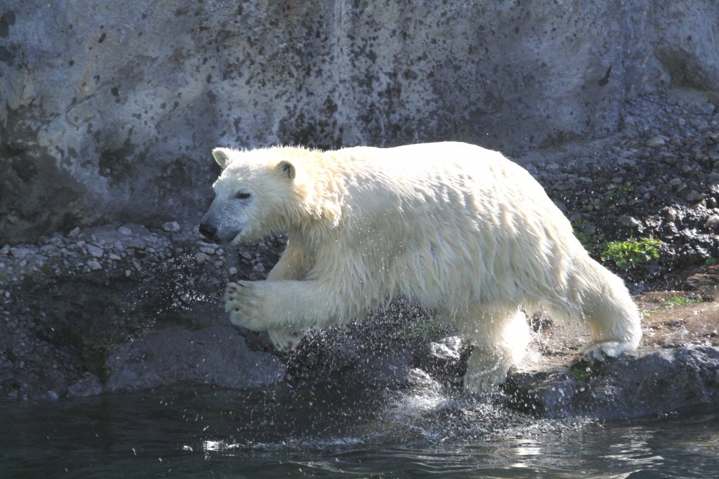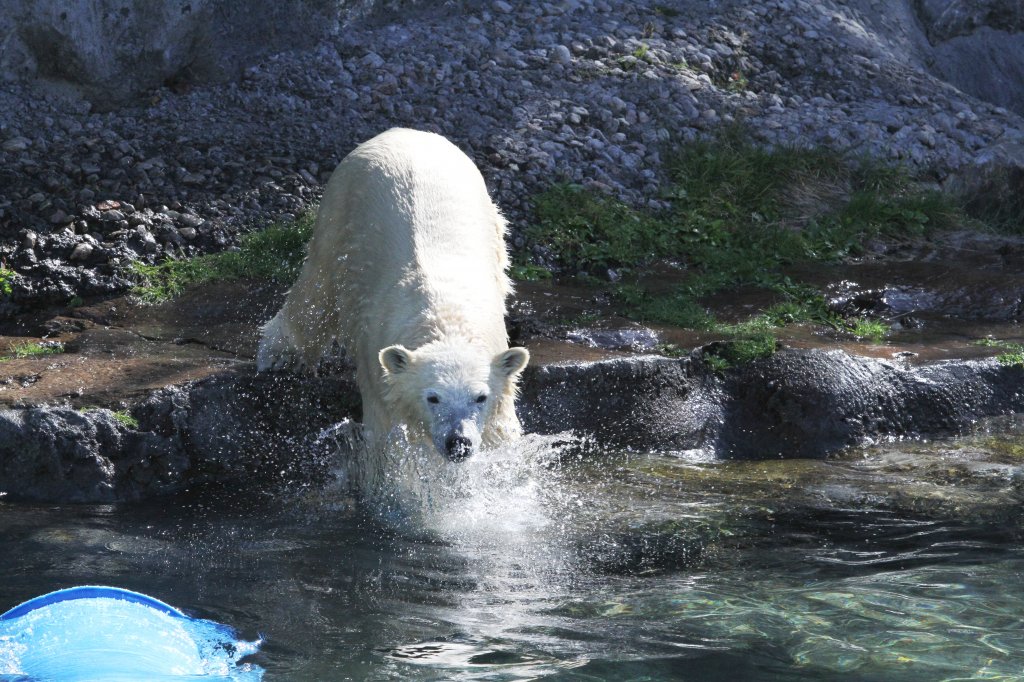 Weißwedelhirsch (Odocoileus virginianus) am Flußufer. Zoo Sauvage de Saint-Félicien,QC am 18.9.2010. Dieser Zoo ist in einen begehbaren und in einen mit einem Zug befahrbaren Teil aufgeteilt.