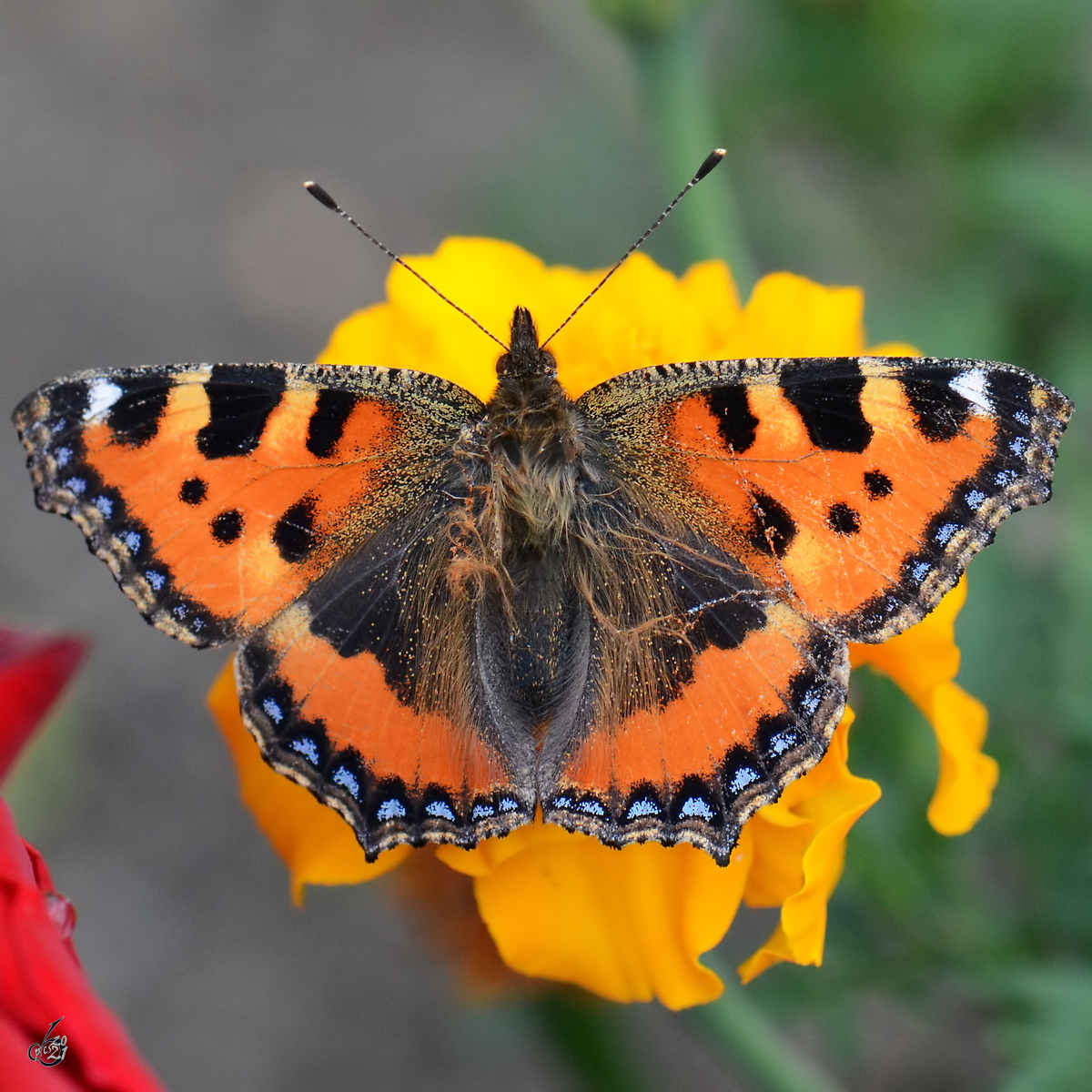 Ein Kleiner Fuchs pausiert im elterlichen Garten. (Jarmen, August 2014)
