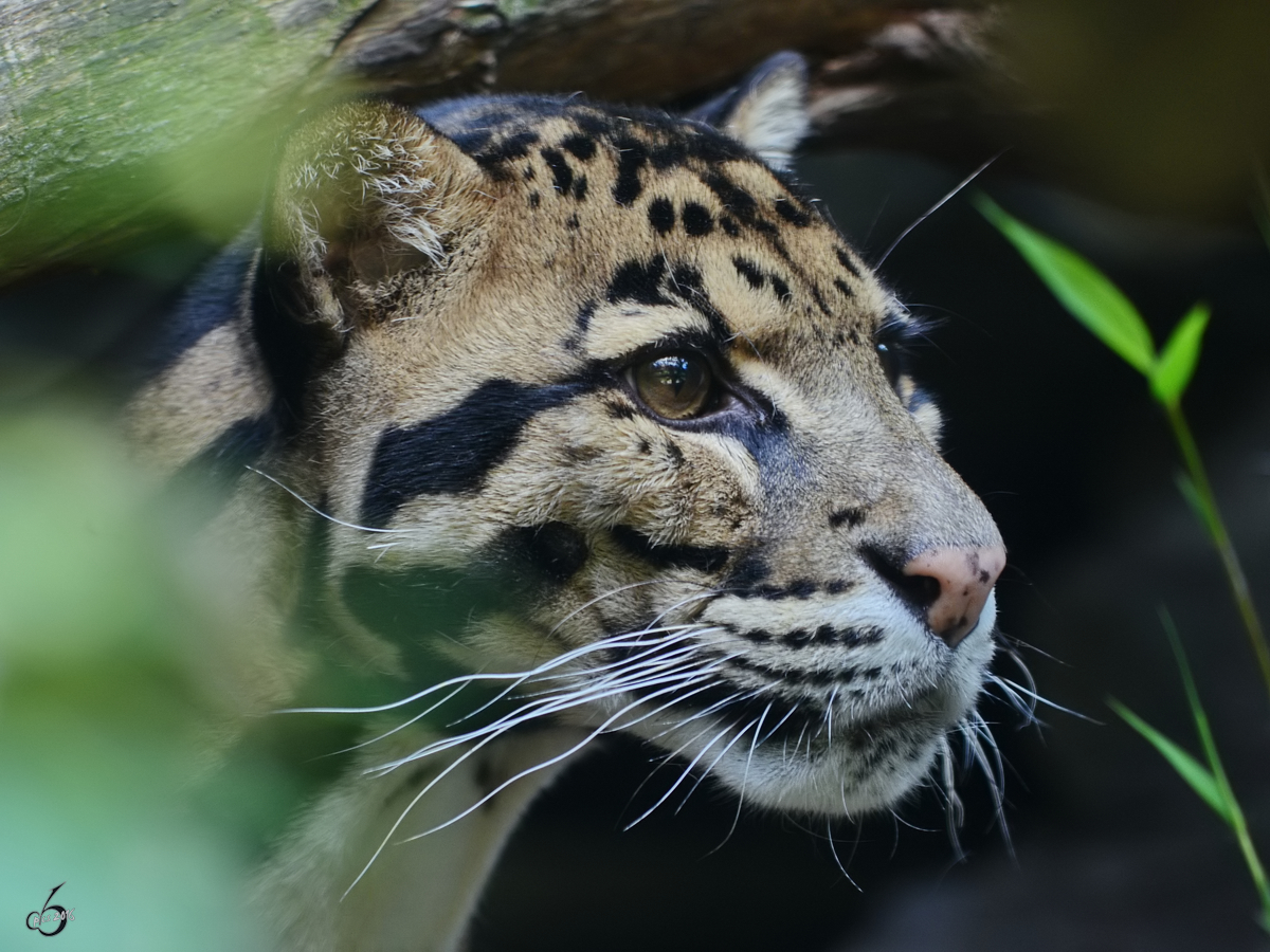 Ein Nebelparder versteckt sich im Dickicht. (Zoo Duisburg, Juli 2013)